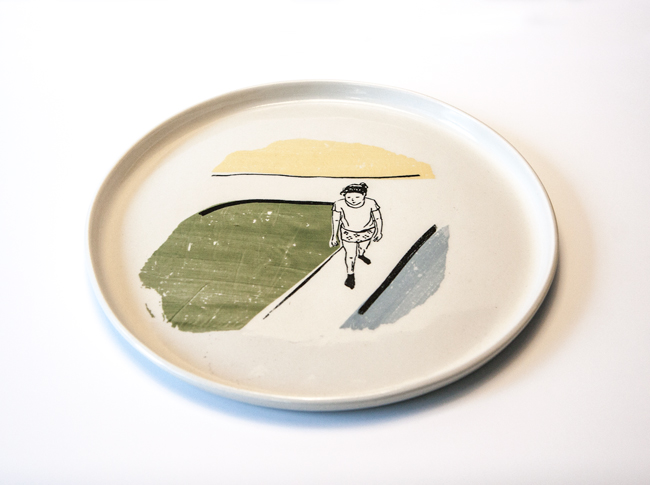 Thrown, hand painted with print